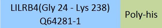 Mouse LILRB4, His Tag (CDK-M5229) is expressed from human 293 cells (HEK293). It contains AA Gly 24 - Lys 238 (Accession # Q64281-1 ).